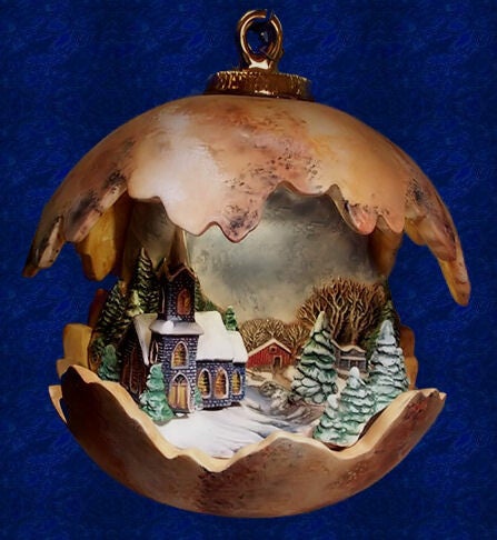 Kleine kerstbal met kerkje